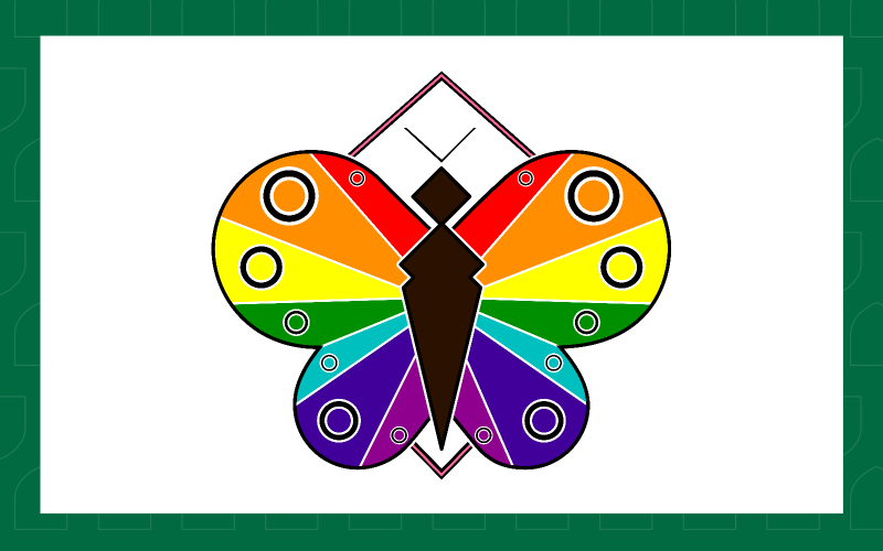 To me, this design refers to history, to beauty, and the process of progress itself. The butterfly, like the queer community, has gone through a lot to be what it is today; it is diverse and colourful. Gilbert Baker's original rainbow flag and the pink triangle symbol are still iconic symbols that resonate in the queer community.