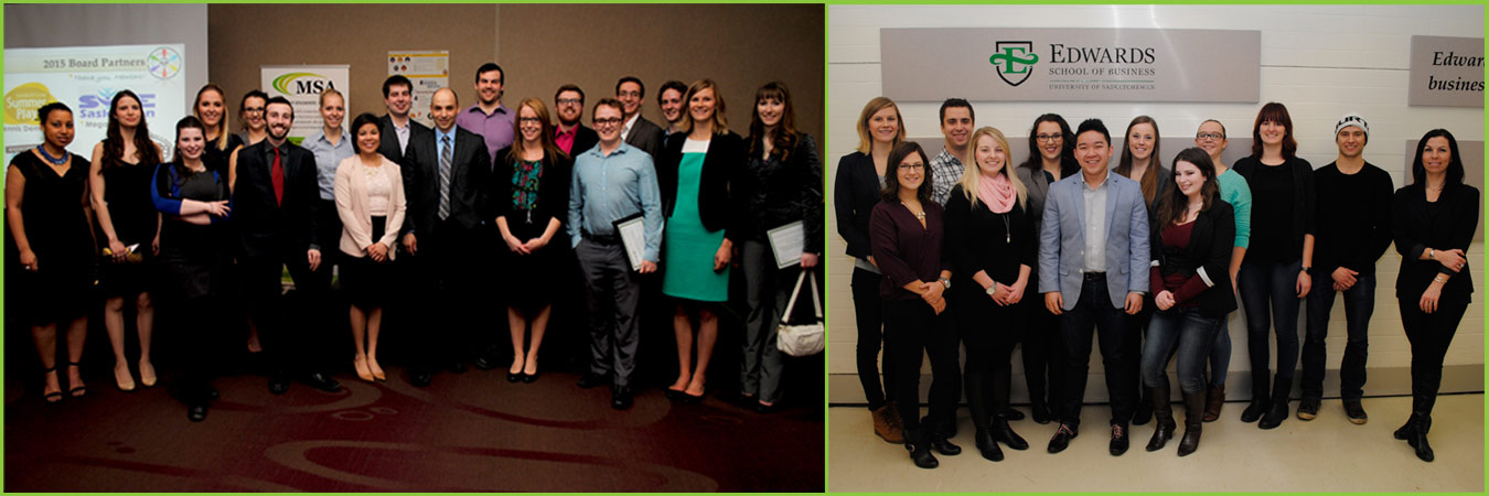 The Edwards Partnership Gala filled the gallery room at TCU Place on April 9th, 2015. The event—spearheaded by professors Vince Bruni-Bossio and Chelsea Willness—showcased achievements from two innovative experiential courses at the Edwards School of Business: the Governance & Leadership Development Practicum (COMM 498) and the Management Consulting Project Course (COMM 448). The Gala was attended by current and prospective community partners, clients, board mentors, students, and other special guests.