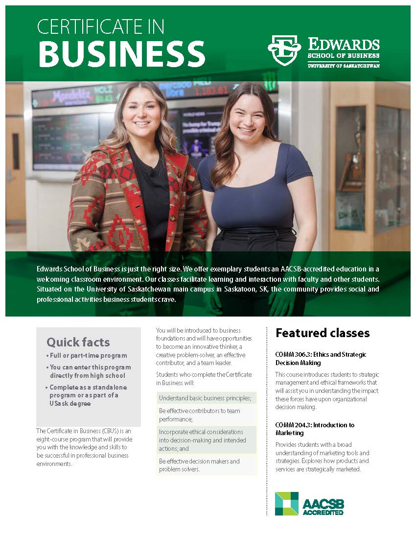 Note 3: Edwards School of Business does not recommend this Certificate in Business program to international students because the program can be completed in 8 months.
