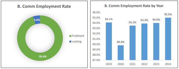 | Employed | 94.1% | 89.8% | 93.5% | 93.9% | 94.0% | 95.0% |
